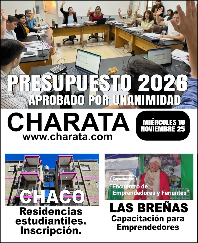 Presupuesto 2026, el Concejo Deliberante aprobó por unanimidad.En la mañana del martes 18 de noviembre, en el Concejo Deliberante de Charata, los concejales de ambos bloques tomaron la decisión de aprobar por unanimidad el Cálculo de Recursos y el Presupuesto General de Gastos para el Ejercicio 2026.